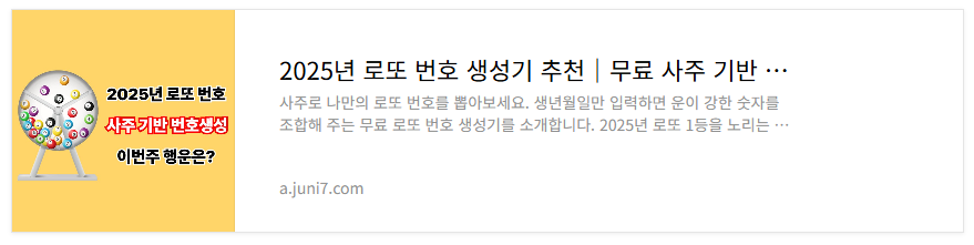 2025년 로또 번호 생성기 추천|무료 사주 기반 로또 번호 뽑기 방법 (4) | 2025.05.16 |